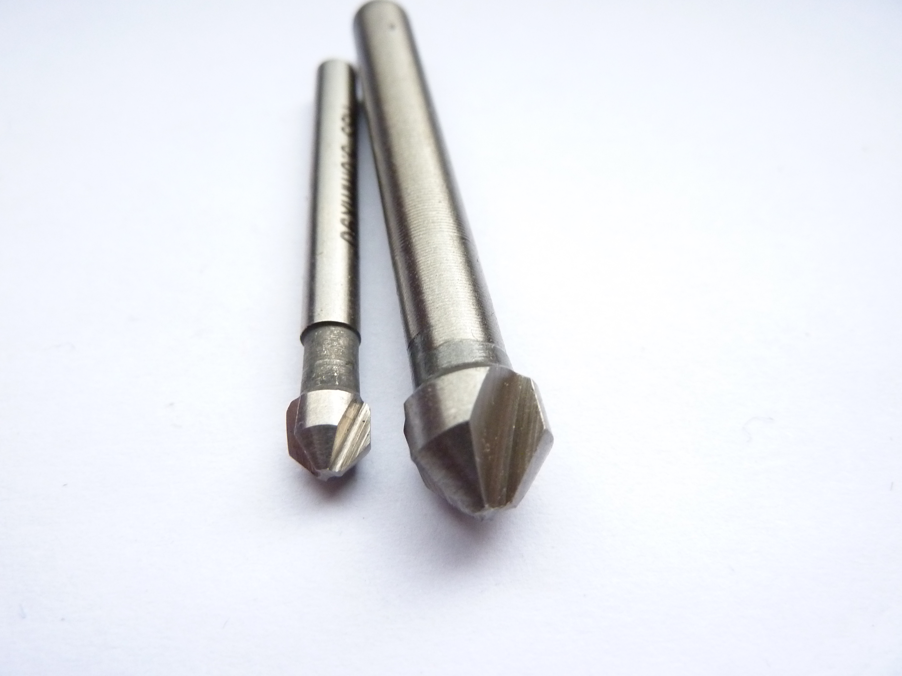 Die drei Schneiden zentrieren den Senker genau in der Bohrungsmitte und erzeugen eine gleichmäßig runde Senkung ...